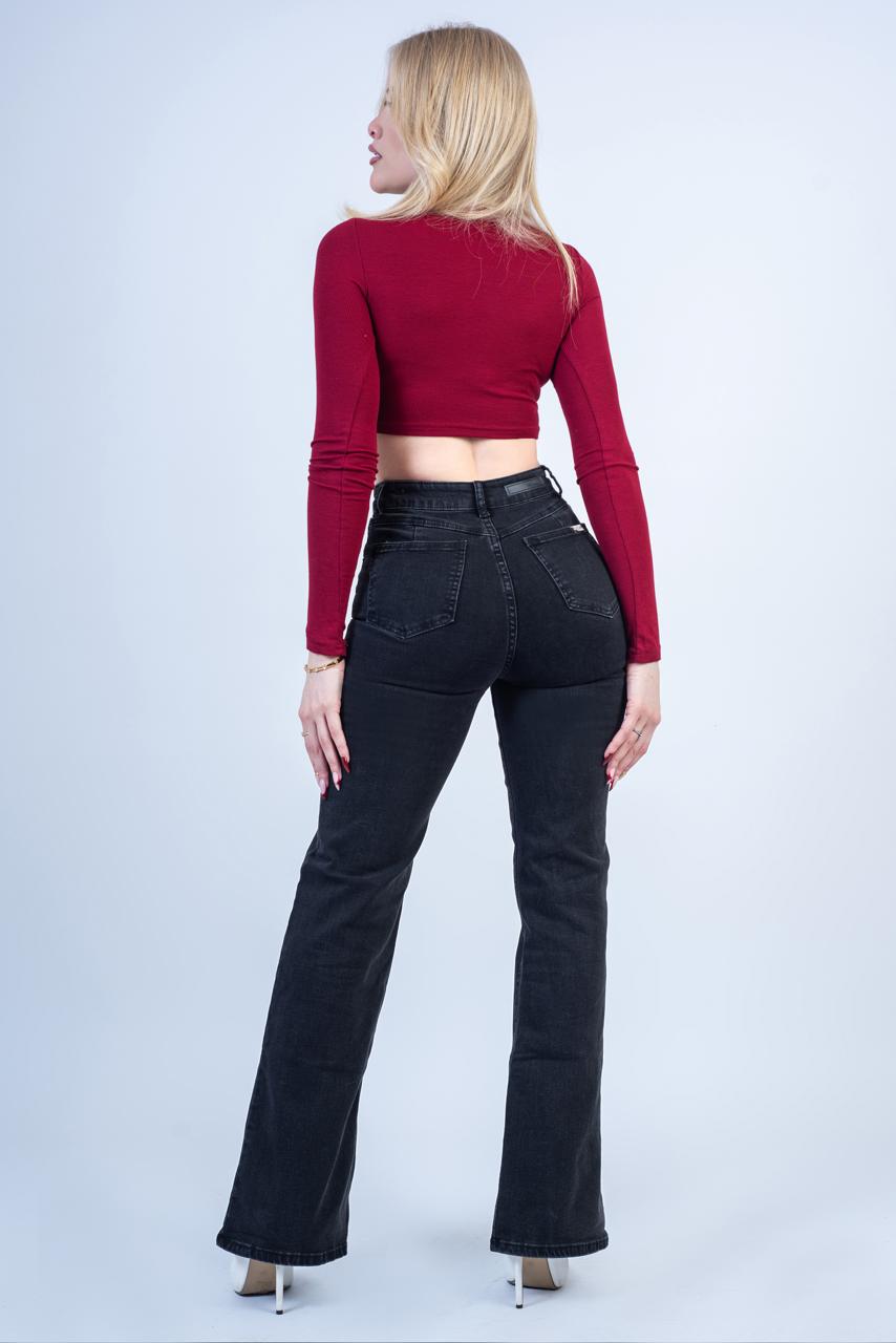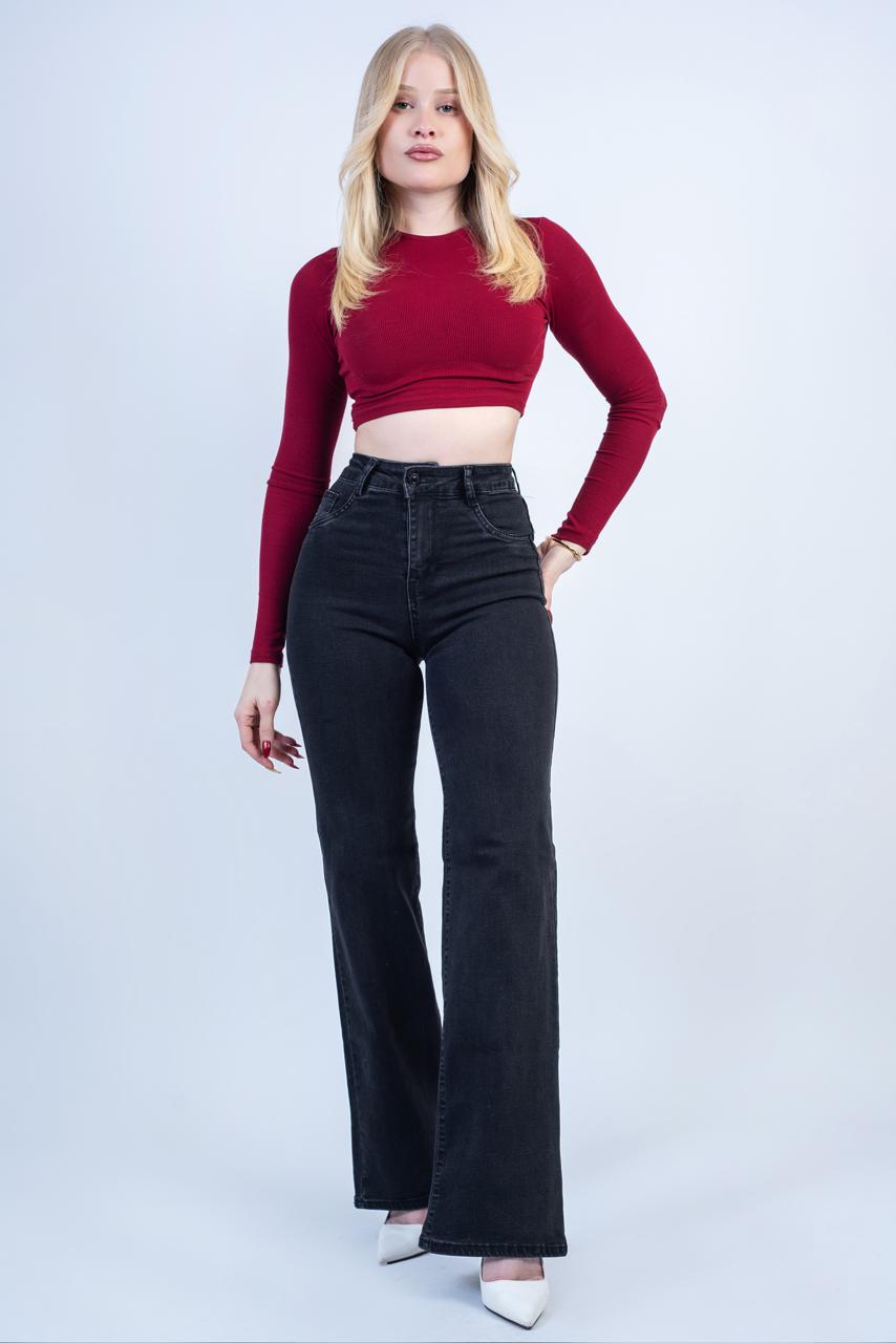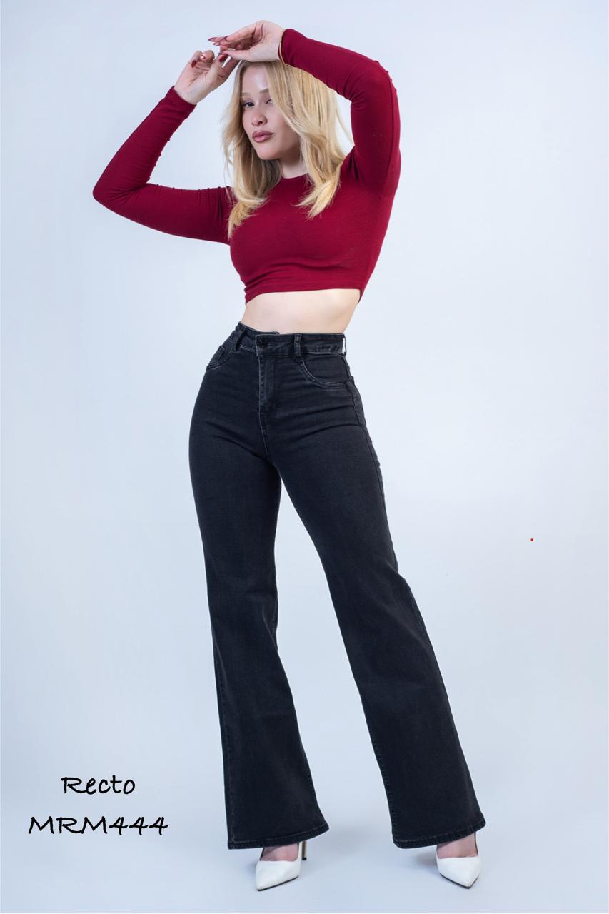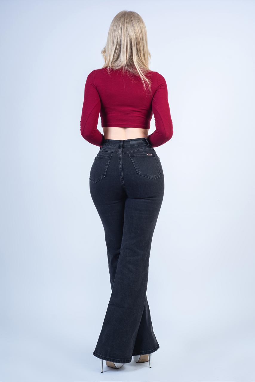 JEANS ANCHO RECTO NEGRO PUSH UP, TIRO ALTO ELASTICADO. LA MODELO USA TALLA 36